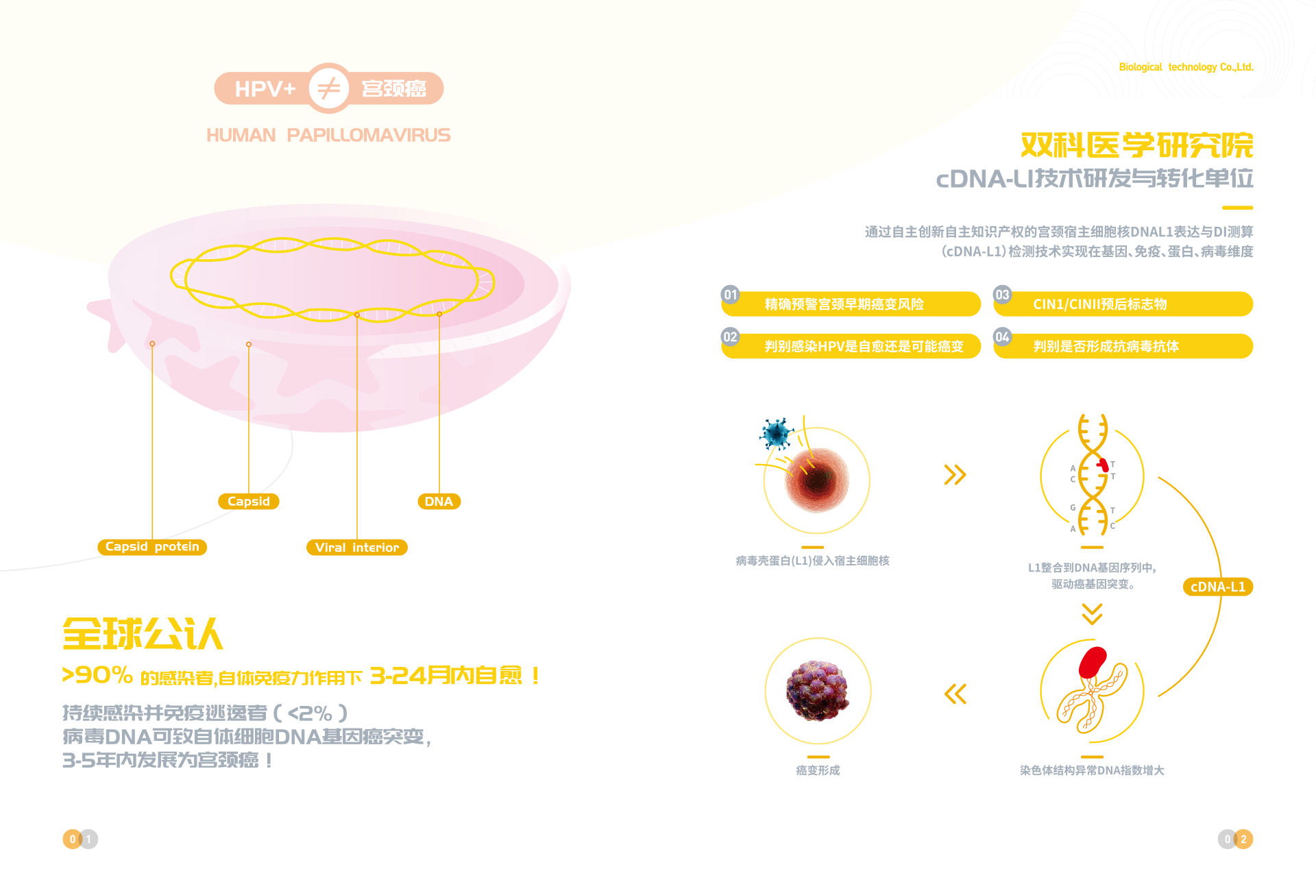 深圳市双科生物科技有限公司创立于2012年12月12日,是按照国家“十二五”、“十三五”科技创新规划、《中国防治慢性病中长期规划(2017-2025年)》与《“健康中国2030”规划纲要》等政策要求,以“健康中国所系,呵护生命相托”为公司使命,在“十二五”及“十三五”期间公司先后完成技术体系建模与试运行、服务体系构建与运行、肿瘤综合防控体系建立与实施,在高新生物技术领域,形成了具有完全自主创新与独立知识产权的常见肿瘤液态活检技术、体细胞技术、医学AI技术、宫颈癌预警cDNA-L1技术、脑卒中早期预警MTHFR/MTRR技术 、 N-MDT技术、“防-控`-保”技术等和服务体系。